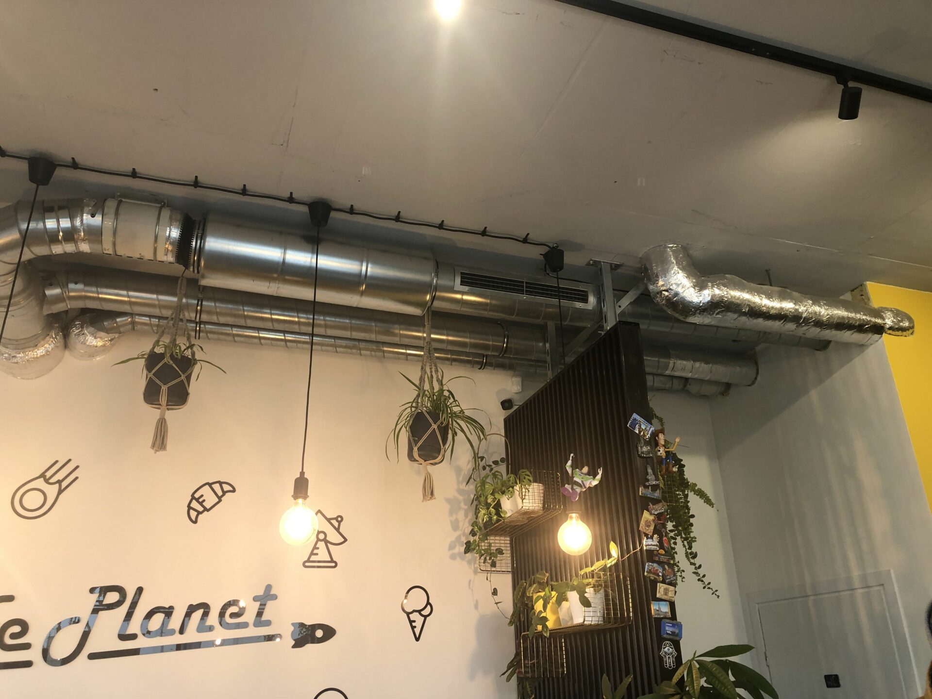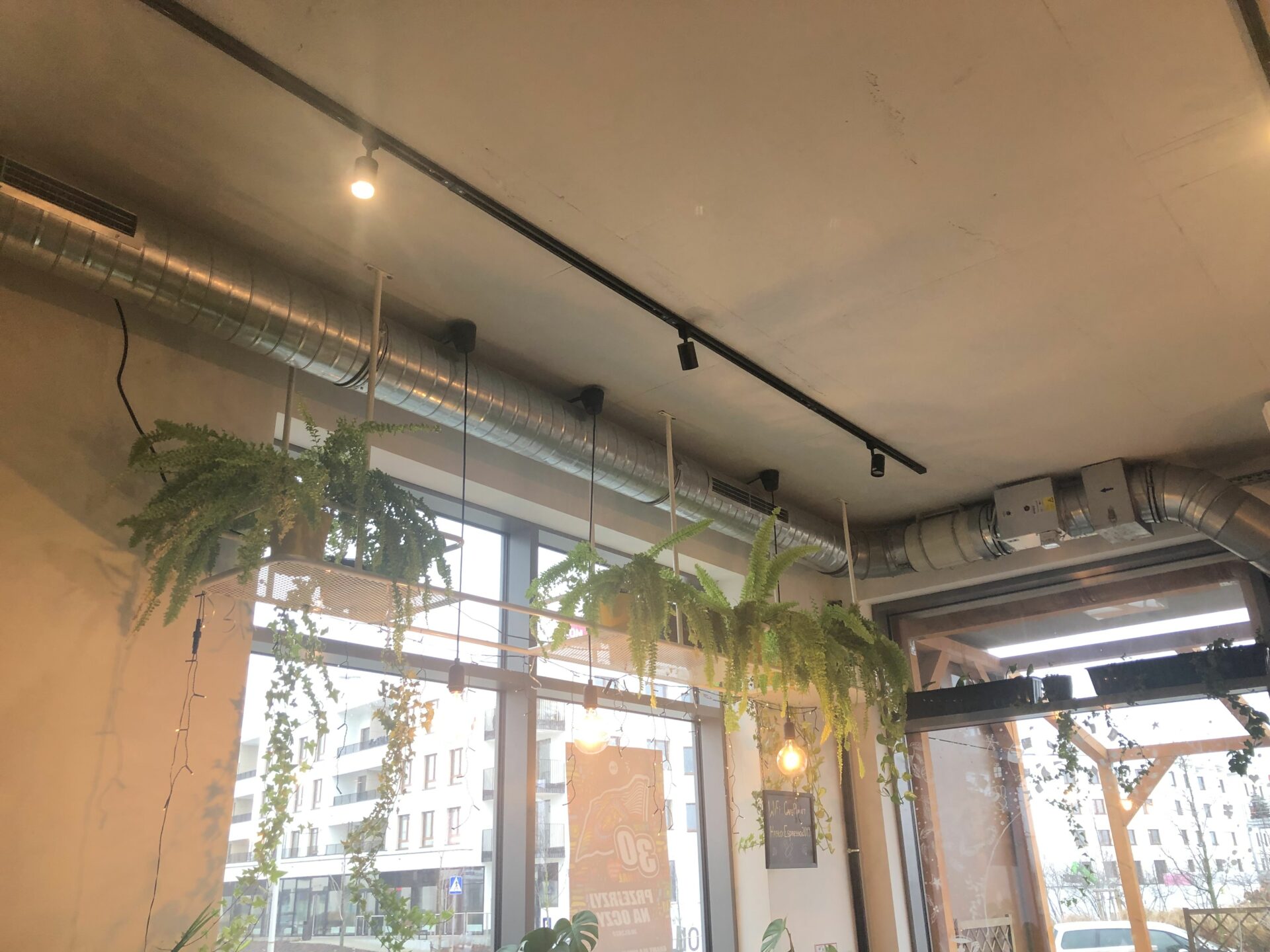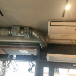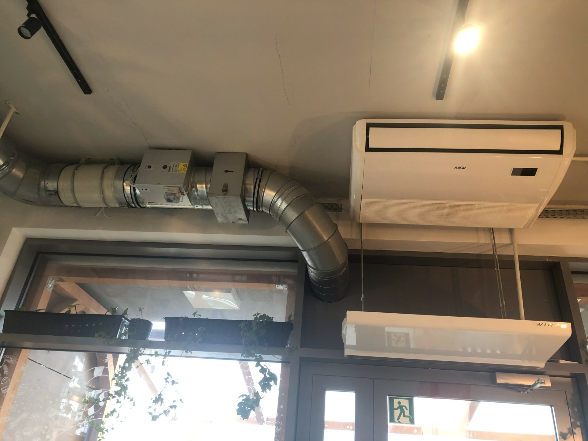 Instalacje klimatyzacji i wentylacji obiektu gastronomicznego. Wentylacja oparta na wentylatorze nawiewnym z sekcją filtra i nagrzewnicą elektryczną wyposażoną w automatykę dostosowującą jej moc do aktualnego zapotrzebowania. Wywiew oparty na okapach gastronomicznych i wentylatorze kanałowym. Klimatyzacja realizowana za pomocą urządzenia marki MDV typu podstropowego. Dobrano ten rodzaj jednostki wewnętrznej biorąc pod uwagę podłużny kształt sali konsumpcyjnej wymagającej duży zasięg nawiewu schłodzonego powietrza oraz sposób montażu nie ingerujący w wystrój pomieszczenia. Jednostka zewnętrzna zlokalizowana w przestrzeni parkingu podziemnego poniżej lokalu.
